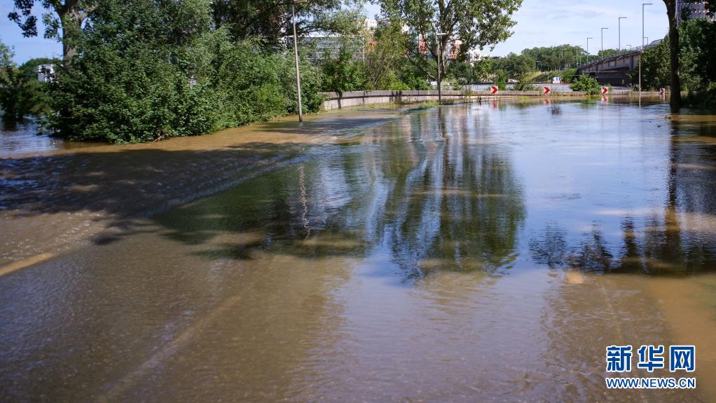 這是7月17日拍攝的荷蘭林堡省魯爾蒙德鎮(zhèn)被洪水淹沒的路面。