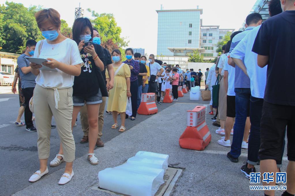 江蘇省南京市于7月21日開始對(duì)全市常住人口、外來(lái)人員開展全員核酸檢測(cè)。目前正值盛夏,氣溫較高,在南京市第一醫(yī)院河西院區(qū)核酸檢測(cè)點(diǎn),工作人員專門為排隊(duì)等候的市民準(zhǔn)備了冰塊降溫。