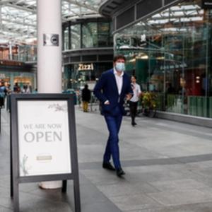 7月26日,一名戴口罩的男子從英國(guó)倫敦維多利亞一家開放的餐廳旁走過。