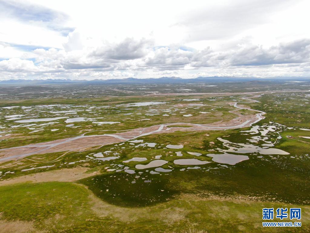 這是7月23日拍攝的長江源地區(qū)的查旦濕地(無人機照片)。