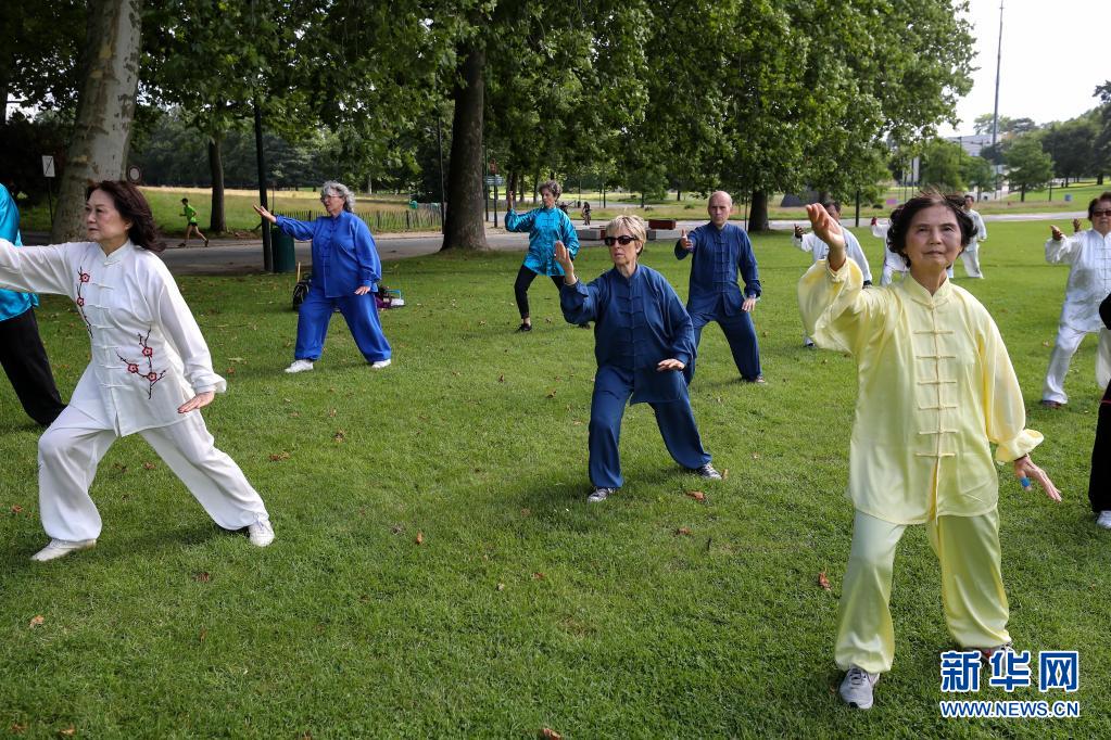 7月28日,人們?cè)诒壤麜r(shí)布魯塞爾的拉肯公園練習(xí)太極。