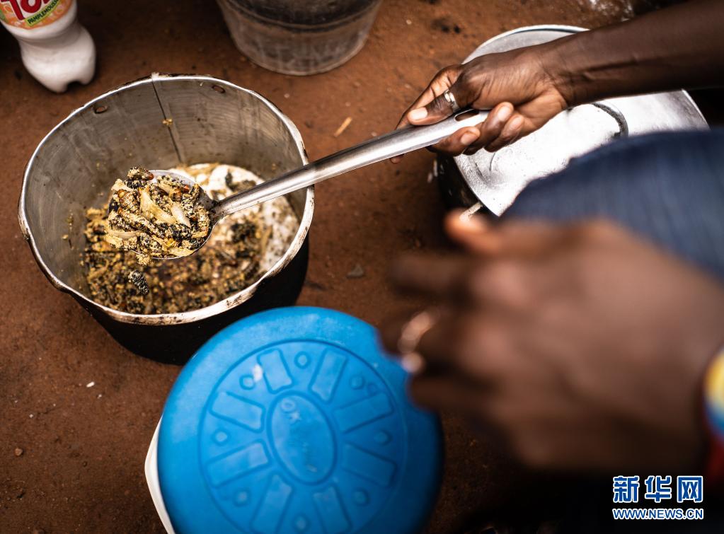 對于生活在糧食匱乏狀況下的居民,蟲子不僅意味著食物可以果腹,也是財富的來源。在雨季,來自首都班吉的經(jīng)銷商每天都騎著摩托車來到當(dāng)?shù)?,收購?dāng)?shù)鼐用褡淼拿x,然后賣到首都消費者手里。