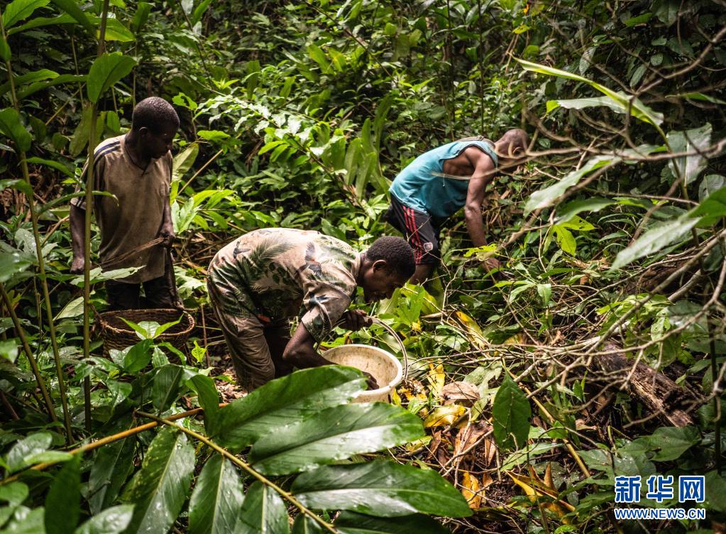 7月18日清晨,中非共和國洛巴耶省當(dāng)?shù)氐馁赂衩兹嗽谏掷镎蚁x子。