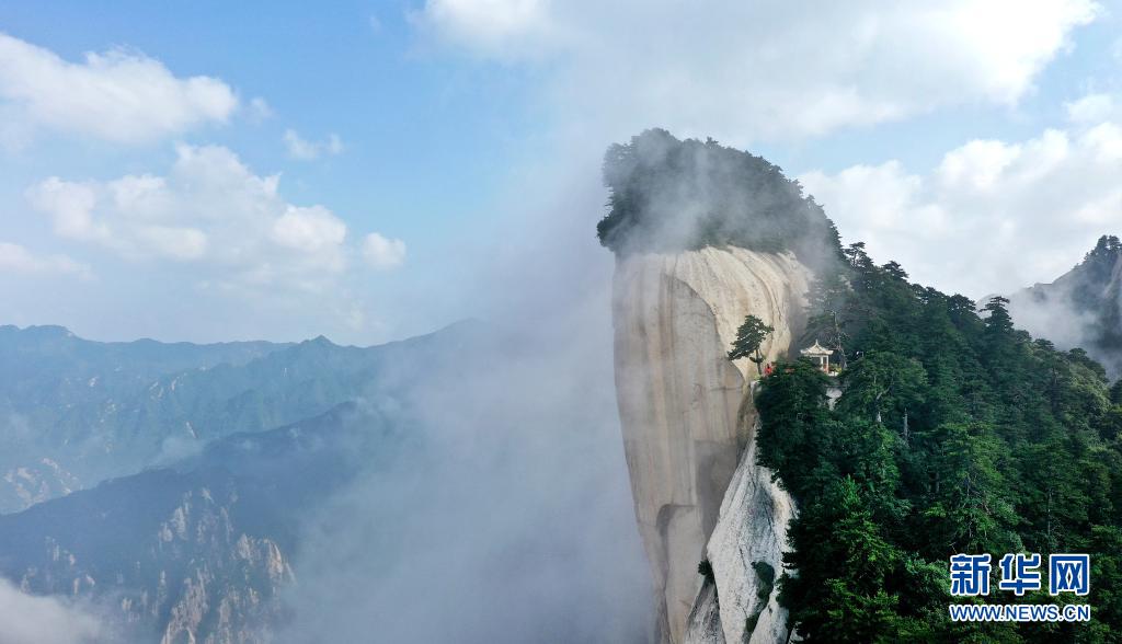 8月14日,云霧中的西岳華山風(fēng)光(無人機(jī)照片)。