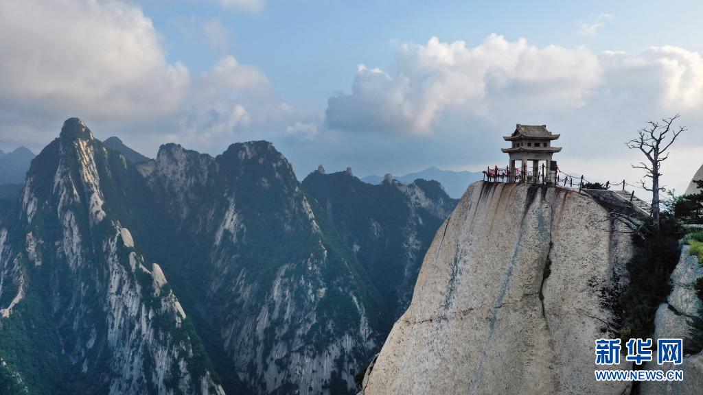 8月14日,西岳華山東峰下棋亭風(fēng)光(無人機(jī)照片)。