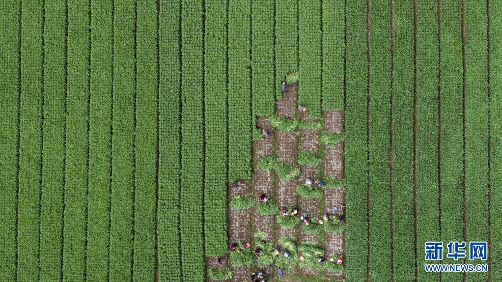 8月13日,在四川省阿壩藏族羌族自治州紅原縣刷經(jīng)寺鎮(zhèn)加當(dāng)村,當(dāng)?shù)厝罕娫谑崭罡咴n筍(無人機照片)。