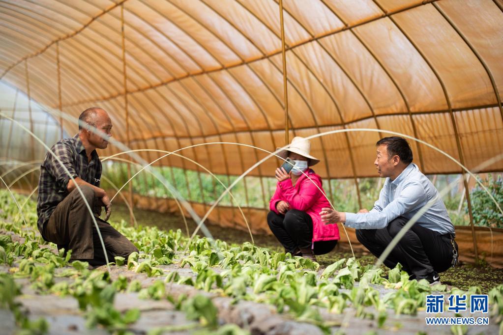 8月13日,在四川省阿壩藏族羌族自治州紅原縣邛溪鎮(zhèn)熱坤村的蔬菜大棚,農業(yè)技術推廣研究員茍?。ㄓ遥┰诮o蔬菜種植大戶答疑解惑。