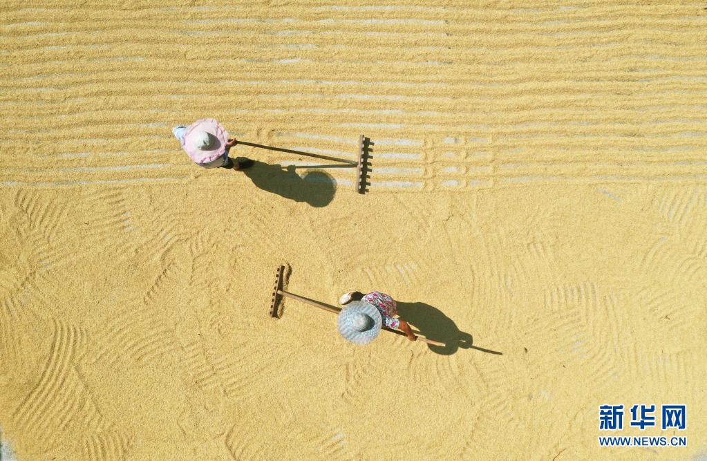8月18日,赤水市復(fù)興鎮(zhèn)太和村的村民在晾曬稻谷(無(wú)人機(jī)照片)。