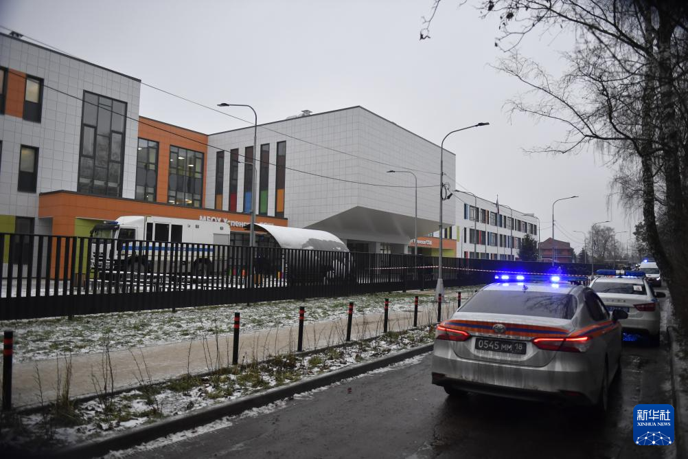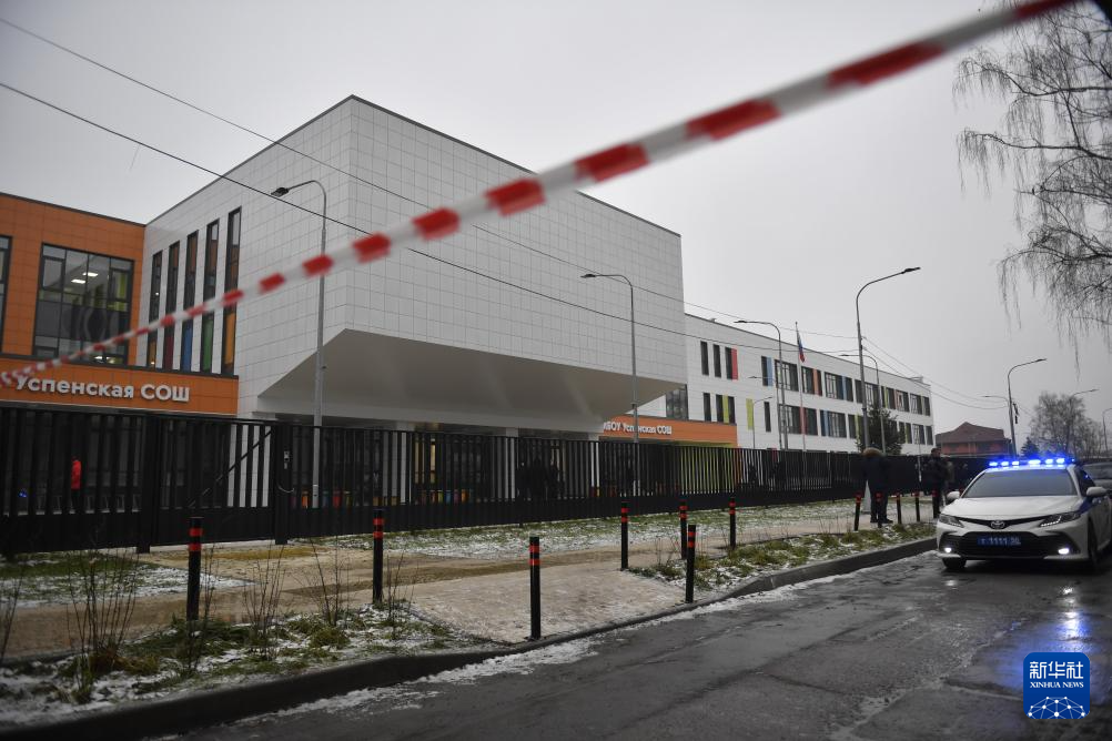 这是12月16日在俄罗斯莫斯科州奥金佐沃市第二戈尔基村拍摄的事发中学。