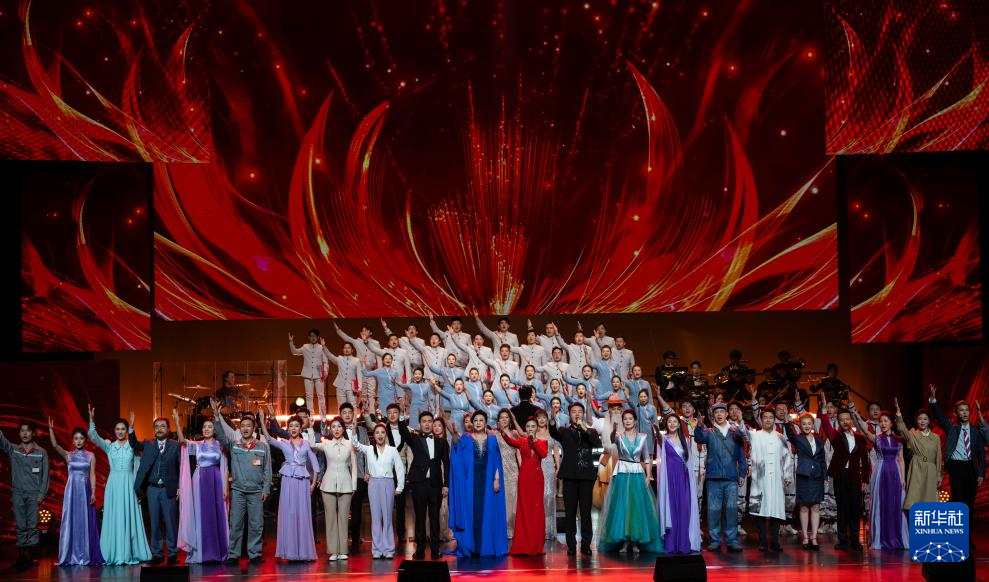 12月16日,在北京二七剧场举办的“中国梦·劳动美”2026新年音乐会上,演员在大合唱《亿万职工心向党》中歌唱。