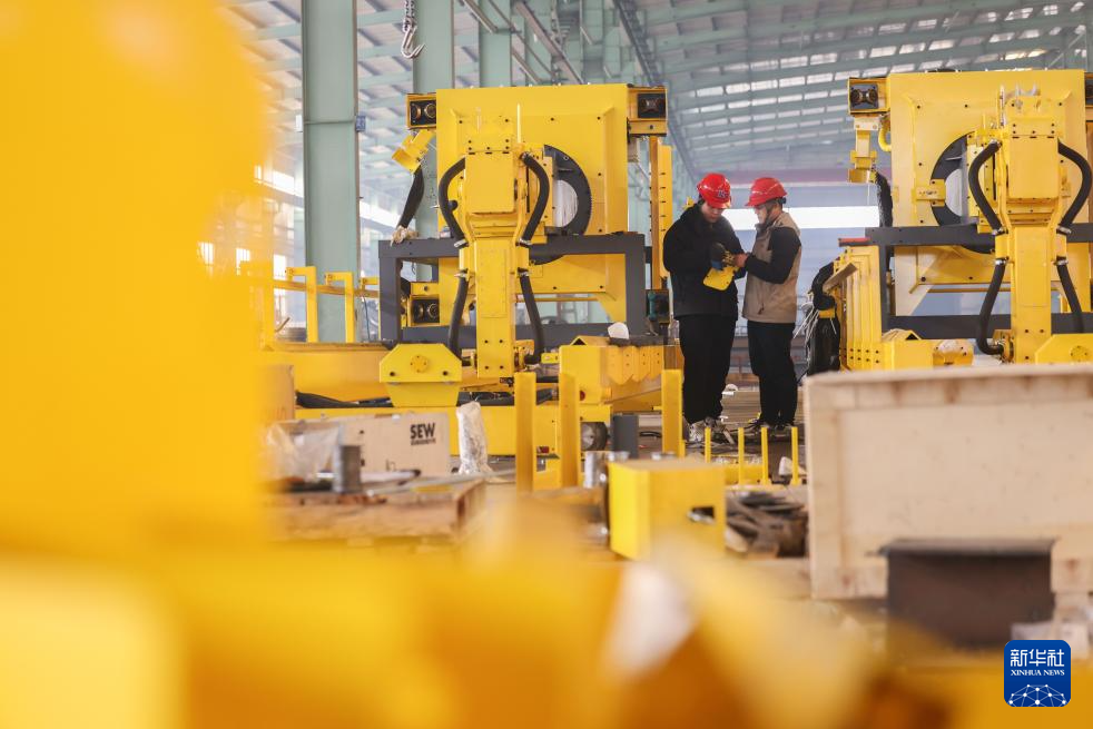 12月16日,在浙江省湖州市德清县雷甸镇的浙江建机德清精益智能工厂,工人在赶制塔机回转机构产品。
