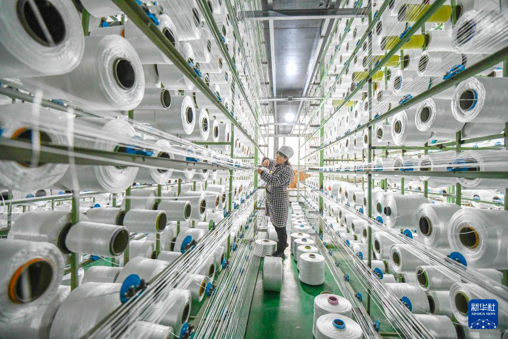 12月16日, 工人在山东枣庄经济开发区一家企业的智能化生产线上加工高端纱线。