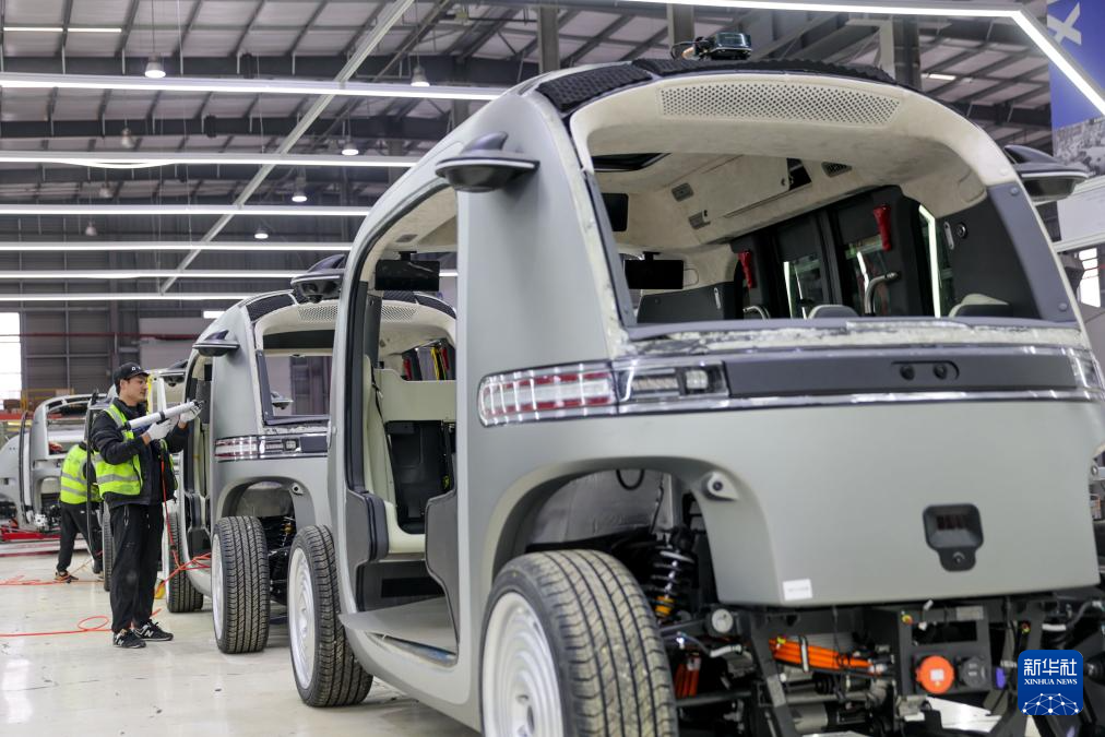 12月16日,工人在贵州省贵阳高新区电子信息产业园内的贵州翰凯斯智能技术有限公司无人驾驶小巴生产车间作业。