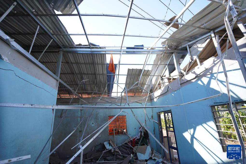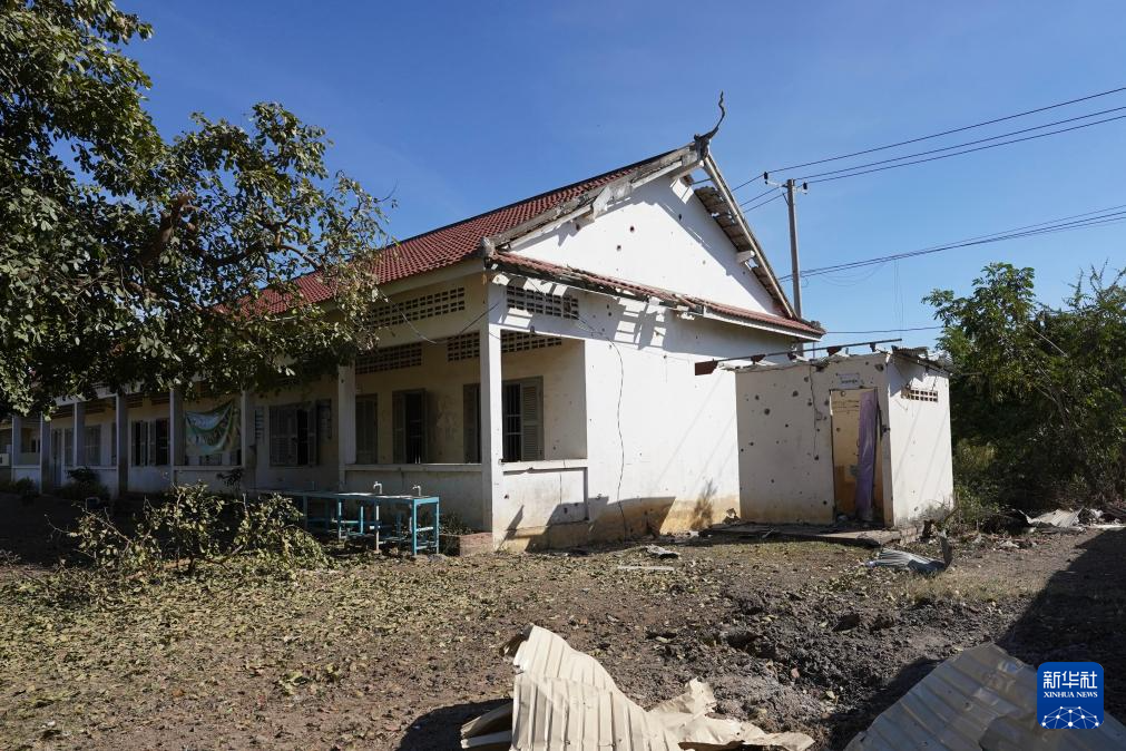 这是12月16日在柬埔寨班迭棉吉省拍摄的一处遭泰军炮击损坏的校舍。