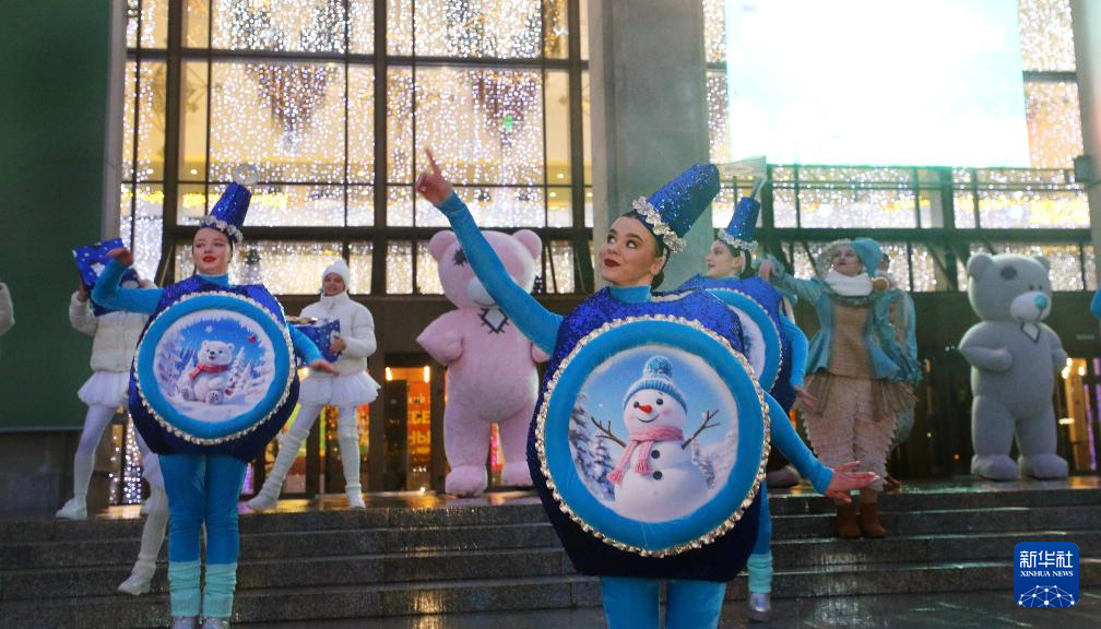12月15日,在白俄罗斯明斯克,演员们在新年树亮灯仪式上表演。