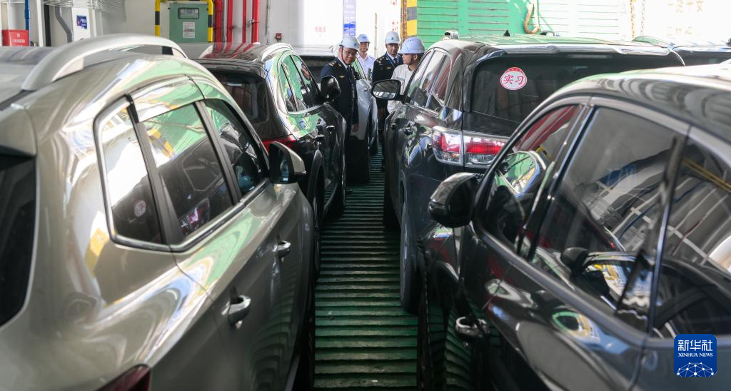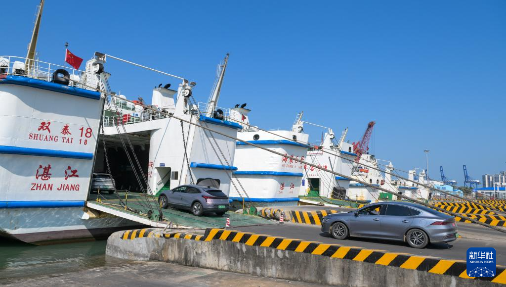2月21日,在海南省海口市秀英港,车辆驶入客滚船。