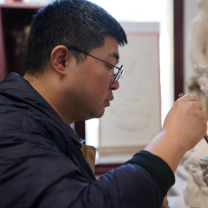 36岁的曾锐是“瓷雕曾”第四代传人,2011年他回家跟随父亲研习制瓷,逐步掌握各类瓷雕技法。2023年“无语佛”爆火后,他成立工作室复刻原作,并结合现代设计开发文创等周边产品。在曾锐看来,传统是根,留住经典题材与技法的同时,用当代语言包装创新,才能让老艺术焕发新生。