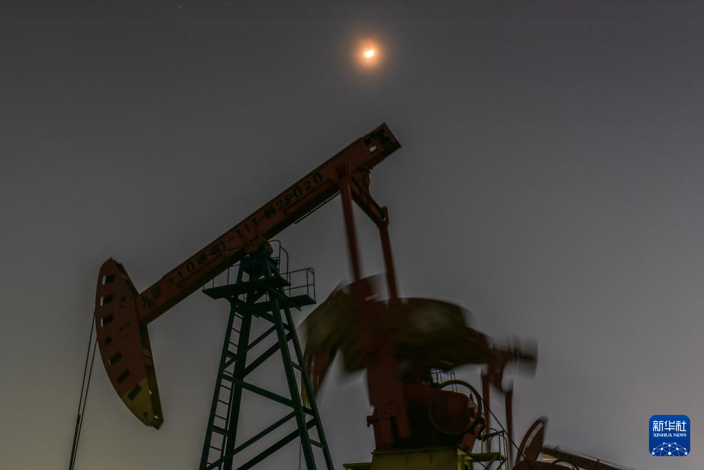3月23日在黑龙江省大庆市拍摄的“昴星团伴月”景观。