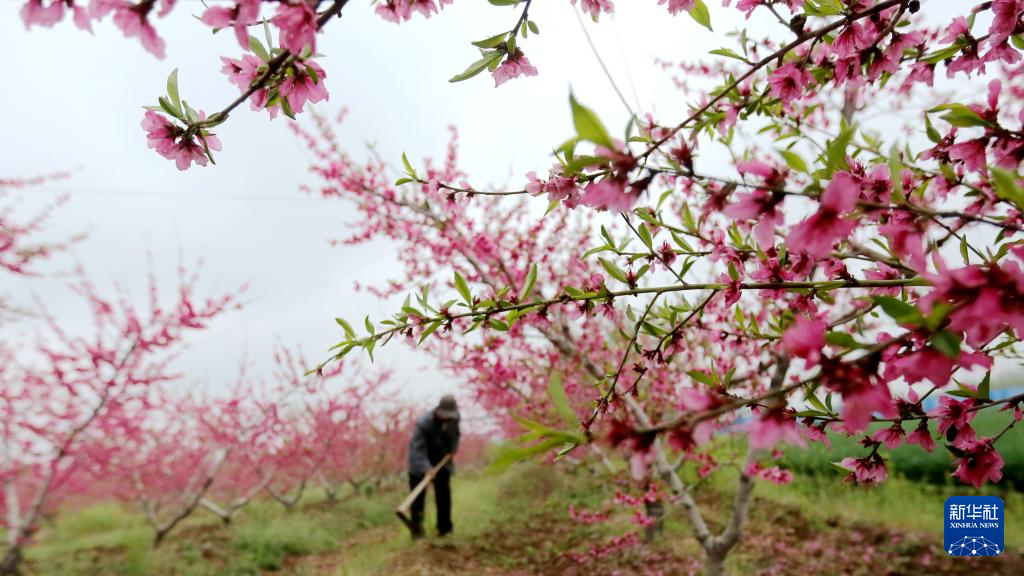 4月9日,山东省临沂市平邑县武台镇农民在桃园里劳作。