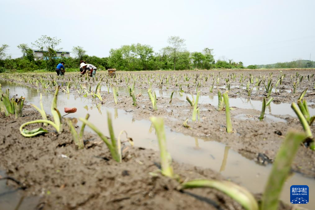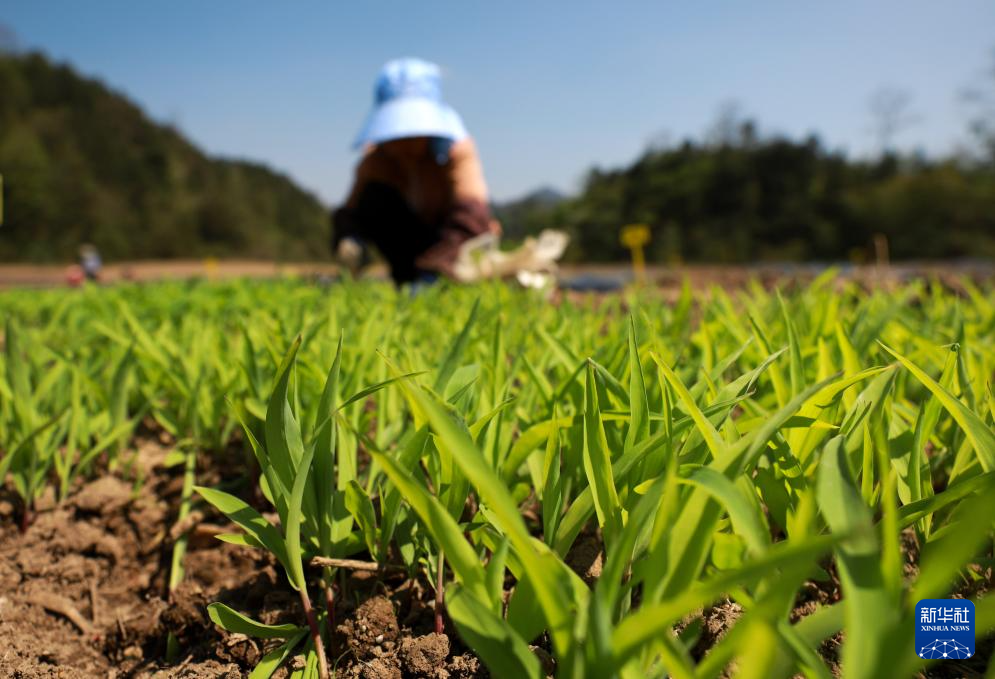 4月9日,在湖南省资兴市唐洞街道香花村香芋种植基地,农户在种植香芋。
