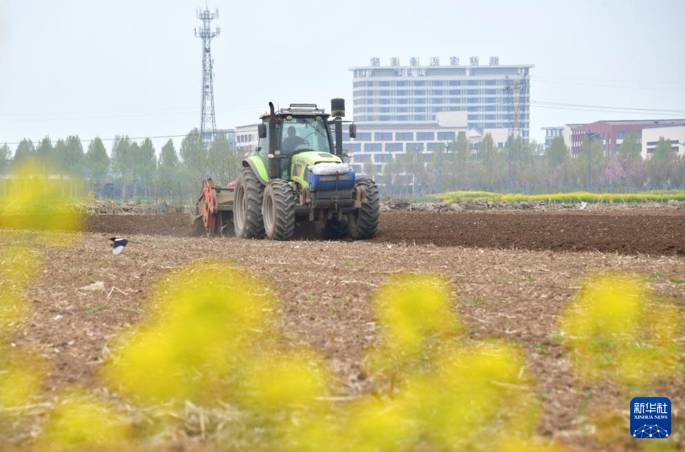 4月8日,农民驾驶农机在河南省鹤壁市淇滨区大赉店镇孟庄村的田间耕作。