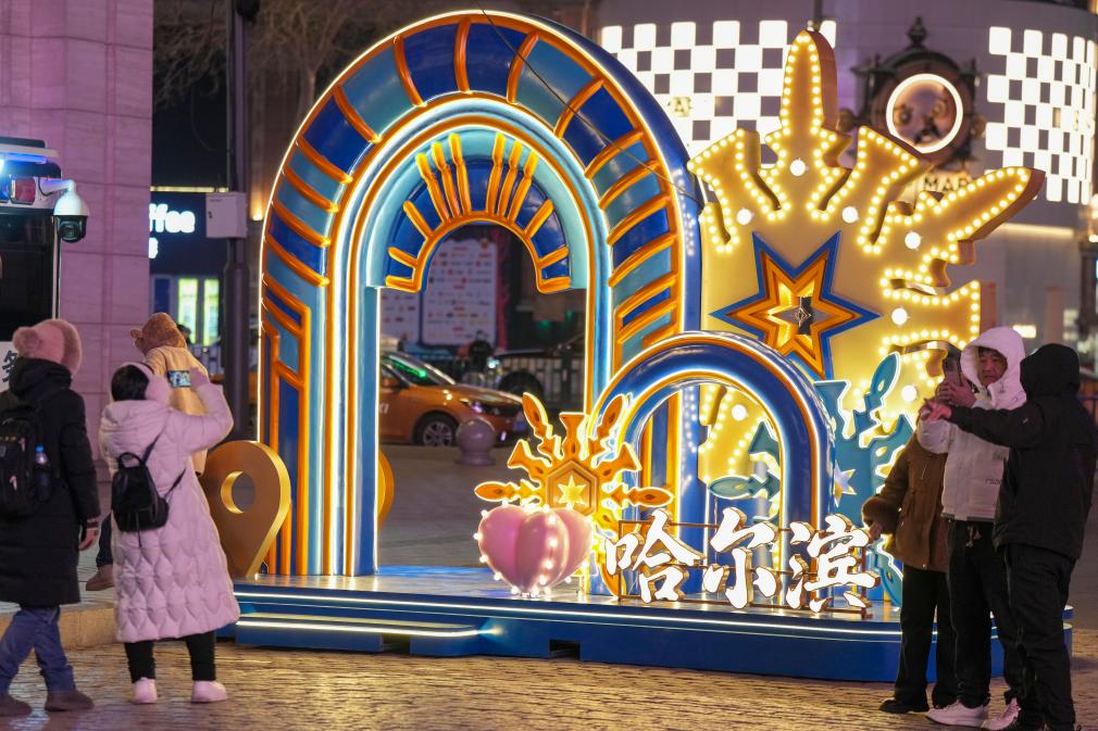 12月以来,哈尔滨进入冬季旅游旺季,中央大街上游人如织。作为哈尔滨市闪耀的城市名片,中央大街在丰富多彩的创意景观与灯饰装饰下显得格外动人。夜幕降临,华灯初上,游人徜徉其中,尽享当地独特文化魅力。