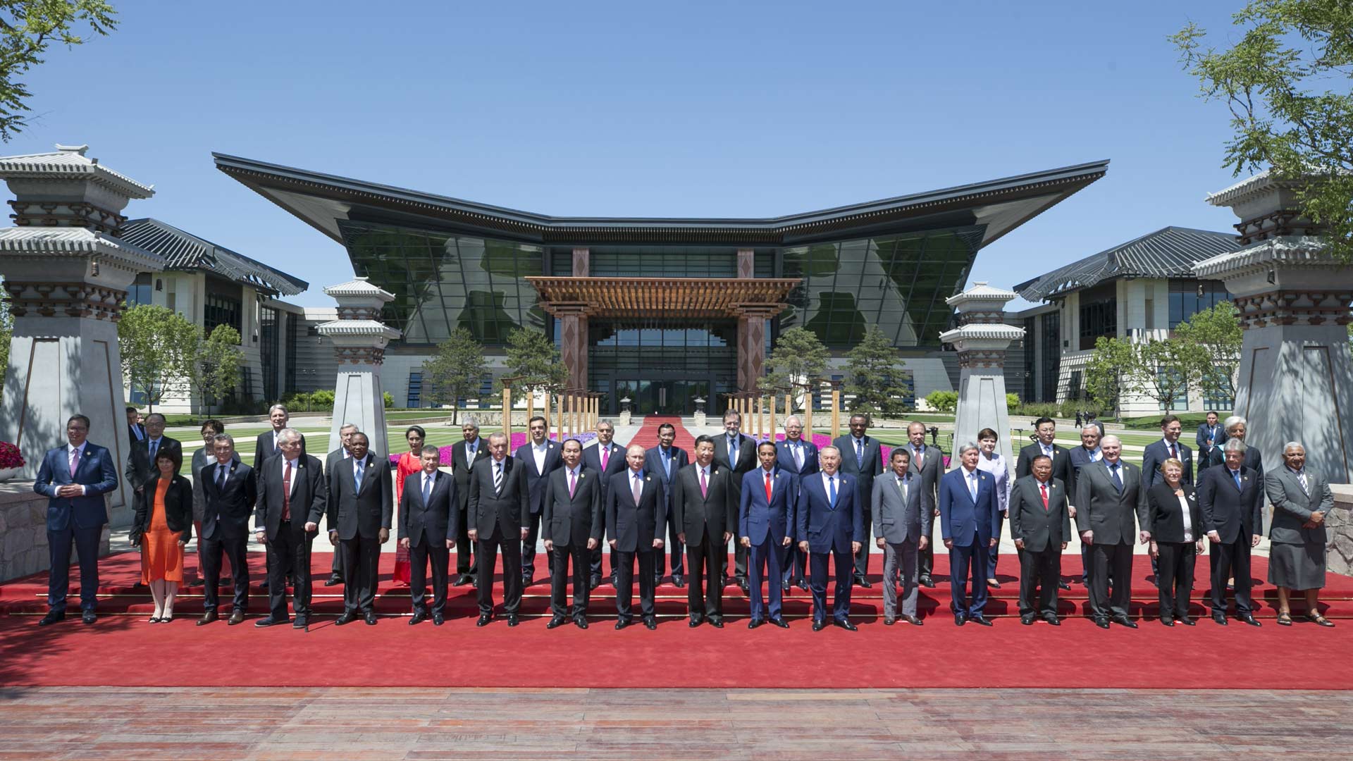5月15日,“一帶一路”國際合作高峰論壇圓桌峰會(huì)在北京雁棲湖國際會(huì)議中心舉行,國家主席習(xí)近平主持會(huì)議并致開幕辭。這是第一階段會(huì)議結(jié)束后,習(xí)近平同外方代表團(tuán)團(tuán)長(zhǎng)及嘉賓在雁棲湖國際會(huì)議中心前合影。新華社記者 姚大偉 攝
