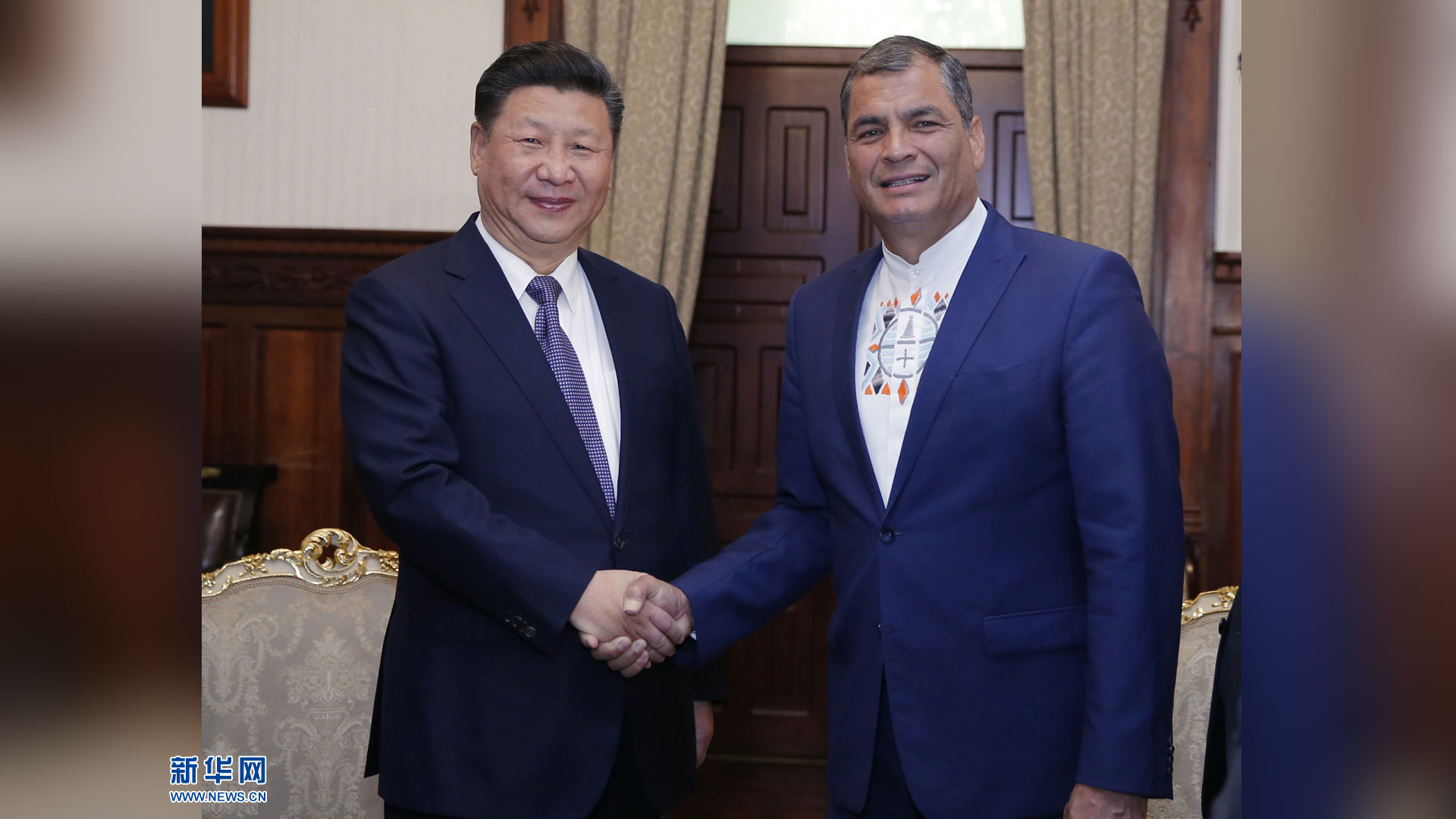 當(dāng)?shù)貢r間11月18日,國家主席習(xí)近平在基多會見厄瓜多爾國民代表大會主席里瓦德內(nèi)拉。 新華社記者 鞠鵬 攝2016-11-19