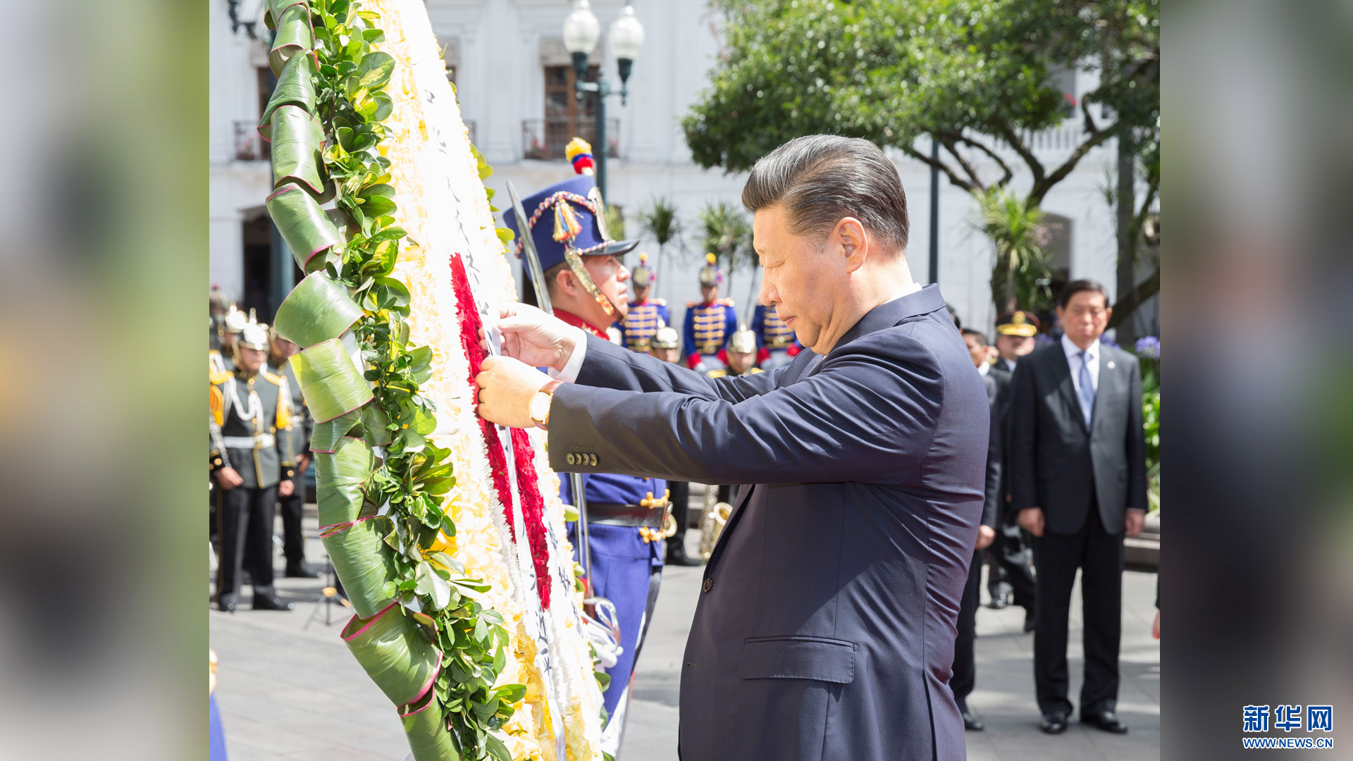 當(dāng)?shù)貢r間11月18日,國家主席習(xí)近平向厄瓜多爾獨立英雄紀(jì)念碑敬獻(xiàn)花圈。 新華社記者 黃敬文 攝2016-11-19