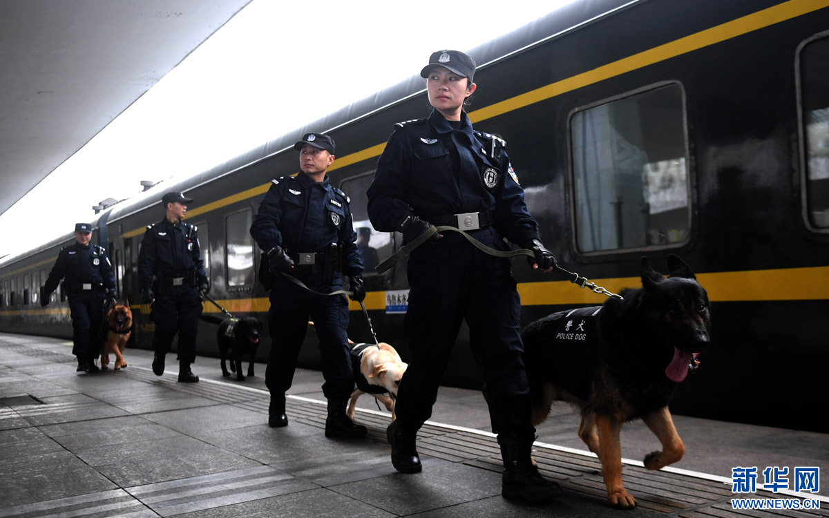 2月5日,劉慧和“威利”在車站行李房進(jìn)行搜查。新華社記者 程敏 攝