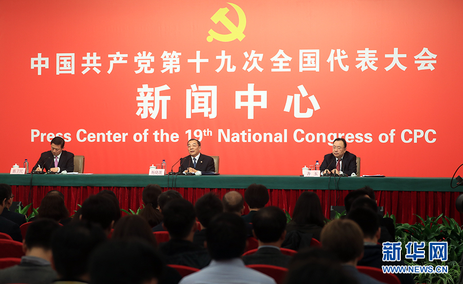 ??? 10月19日,十九大新聞中心舉行記者會,邀請中紀委、中組部負責人介紹黨的建設和全面從嚴治黨相關情況。圖為記者會現(xiàn)場。新華網 郝廣鵬攝
