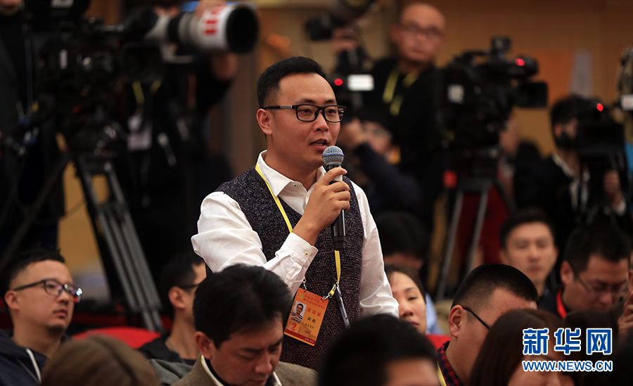 ??? 10月19日,十九大新聞中心舉行記者會,邀請中紀(jì)委、中組部負(fù)責(zé)人介紹黨的建設(shè)和全面從嚴(yán)治黨相關(guān)情況。圖為新京報(bào)記者提問。新華網(wǎng) 郝廣鵬攝
