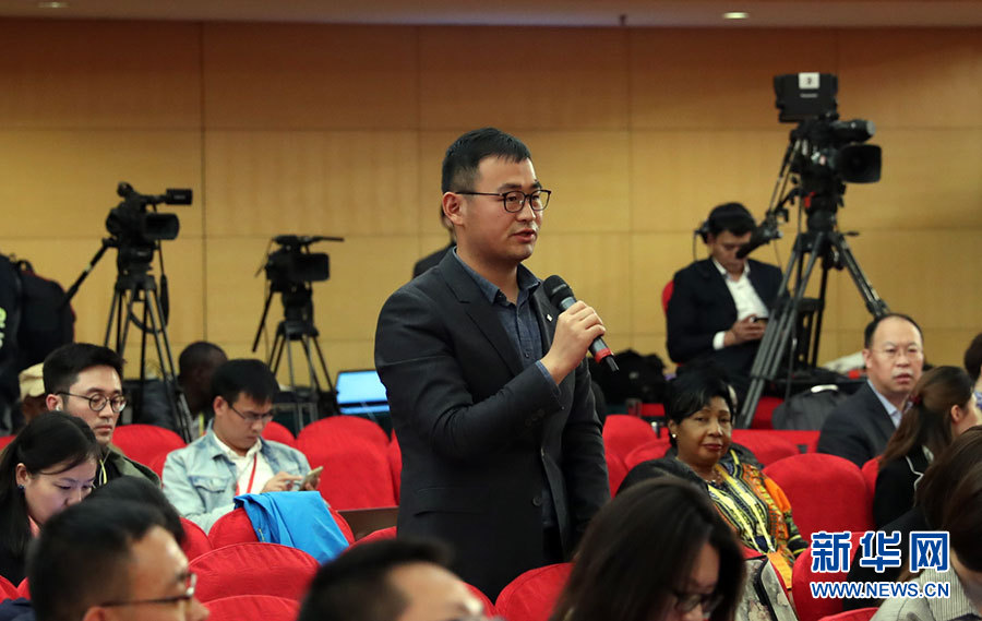 ??? 10月19日,十九大新聞中心舉辦集體采訪,邀請政法戰(zhàn)線代表談全面推進(jìn)依法治國。圖為中央人民廣播電臺記者提問。新華網(wǎng) 郝廣鵬攝