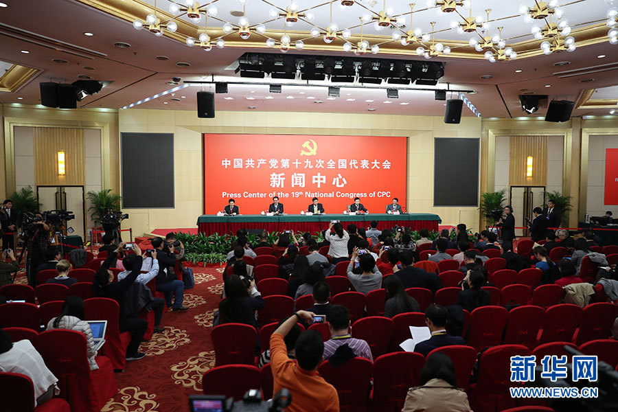 ??? 10月19日,十九大新聞中心舉辦集體采訪,邀請(qǐng)工信和通訊領(lǐng)域代表談走新型工業(yè)化道路。圖為采訪現(xiàn)場(chǎng)。新華網(wǎng) 郝廣鵬攝