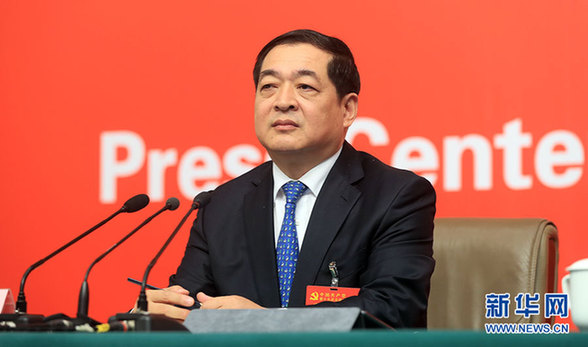 10月19日,十九大新聞中心舉辦集體采訪,邀請工信和通訊領域代表談走新型工業(yè)化道路。圖為山東省經(jīng)濟和信息化委員會黨組書記、主任錢煥濤。新華網(wǎng) 郝廣鵬攝