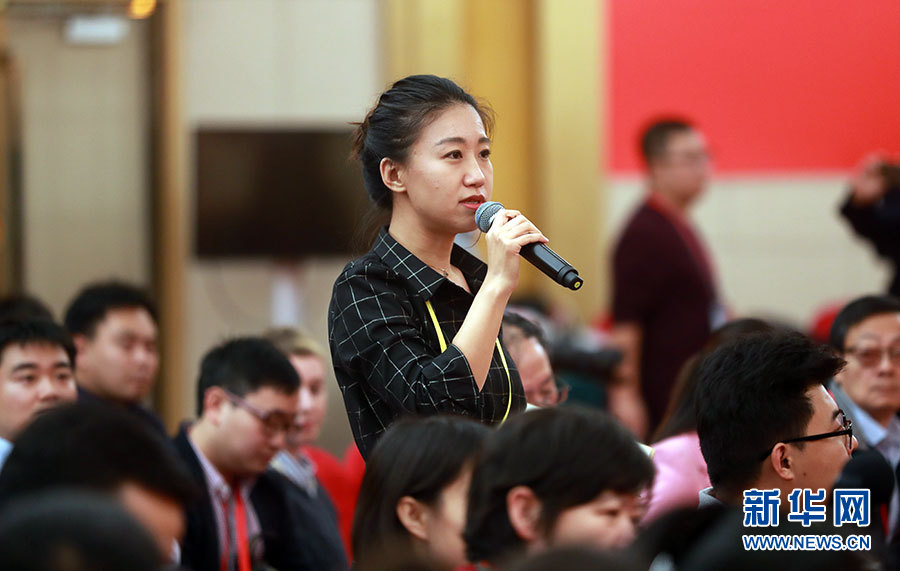 ??? 10月19日,十九大新聞中心舉辦集體采訪,邀請工信和通訊領(lǐng)域代表談走新型工業(yè)化道路。圖為香港大公文匯傳媒集團(tuán)記者提問。新華網(wǎng) 郝廣鵬攝