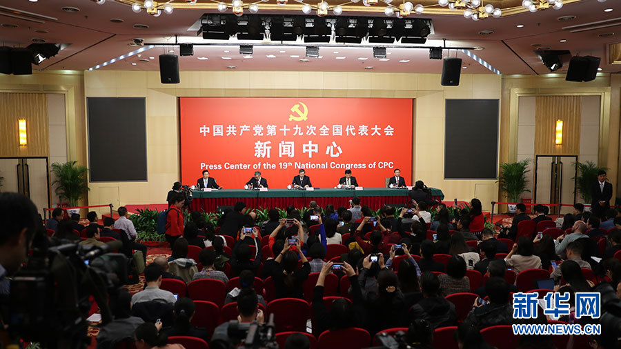 ??? 10月20日,十九大新聞中心舉行記者會,邀請中宣部、中央文明辦、文化部、新聞出版廣電總局相關(guān)負責人介紹加強思想道德和文化建設(shè)情況,并回答記者提問。圖為記者會現(xiàn)場。新華網(wǎng) 郝廣鵬 攝