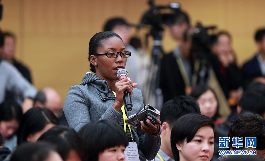 ??? 10月20日,十九大新聞中心舉行記者會(huì),邀請(qǐng)中宣部、中央文明辦、文化部、新聞出版廣電總局相關(guān)負(fù)責(zé)人介紹加強(qiáng)思想道德和文化建設(shè)情況,并回答記者提問(wèn)。圖為古巴拉美通訊社記者提問(wèn)記者提問(wèn)。新華網(wǎng) 郝廣鵬 攝
