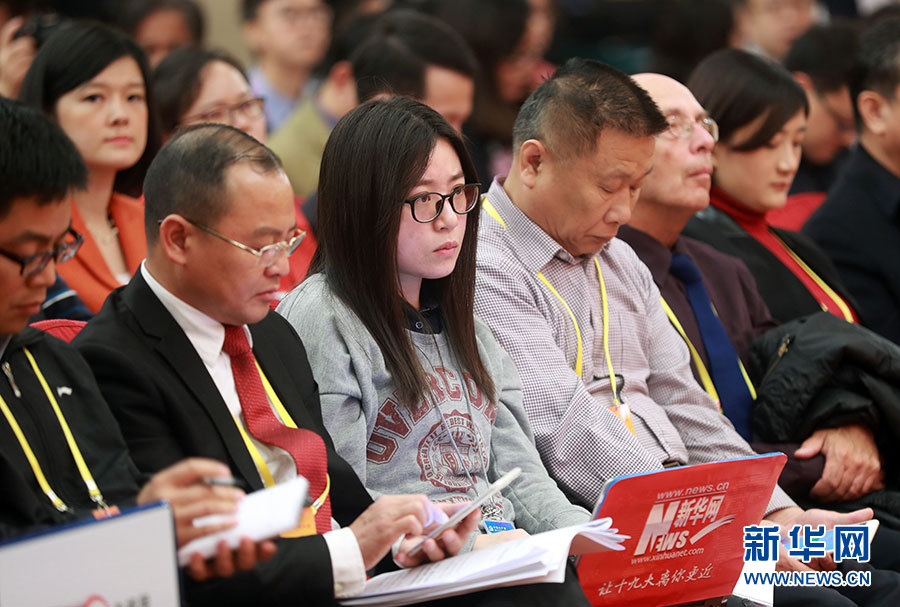 ??? 10月20日,十九大新聞中心舉行記者會(huì),邀請(qǐng)中宣部、中央文明辦、文化部、新聞出版廣電總局相關(guān)負(fù)責(zé)人介紹加強(qiáng)思想道德和文化建設(shè)情況,并回答記者提問。圖為記者會(huì)現(xiàn)場(chǎng)。新華網(wǎng) 郝廣鵬 攝