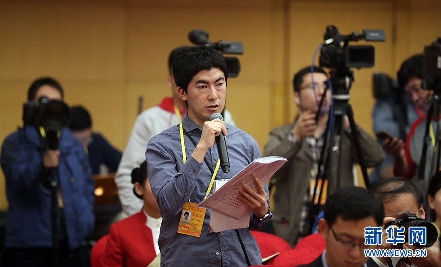 ??? 10月21日,十九大新聞中心舉辦記者招待會(huì),邀請(qǐng)中共中央統(tǒng)戰(zhàn)部常務(wù)副部長(zhǎng)張裔炯、副部長(zhǎng)冉萬(wàn)祥,中共中央對(duì)外聯(lián)絡(luò)部副部長(zhǎng)郭業(yè)洲介紹黨的統(tǒng)一戰(zhàn)線工作和黨的對(duì)外交往情況,并回答記者提問(wèn)。圖為日本共同社記者提問(wèn)。新華網(wǎng) 郝廣鵬攝