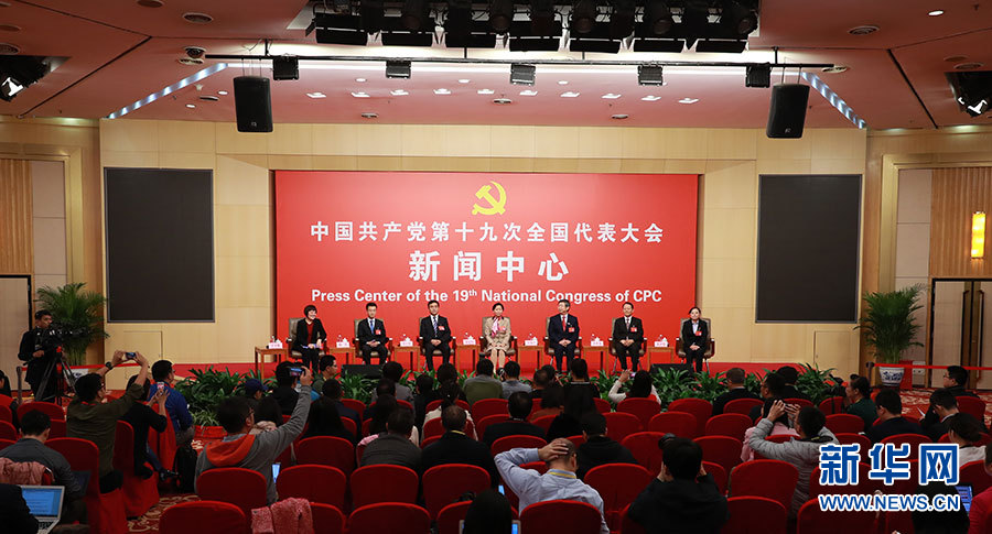 10月22日,十九大新聞中心在梅地亞中心二層新聞發(fā)布廳舉辦集體采訪活動(dòng),邀請(qǐng)教育領(lǐng)域代表談“教育綜合改革”。圖為集體采訪活動(dòng)現(xiàn)場(chǎng)。新華網(wǎng) 郝廣鵬攝