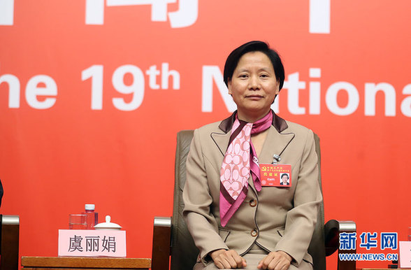 10月22日,十九大新聞中心在梅地亞中心二層新聞發(fā)布廳舉辦集體采訪活動(dòng),邀請教育領(lǐng)域代表談“教育綜合改革”。圖為上海市教育衛(wèi)生工作黨委書記虞麗娟。新華網(wǎng) 郝廣鵬攝