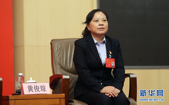 10月22日,十九大新聞中心在梅地亞中心二層新聞發(fā)布廳舉辦集體采訪活動,邀請教育領域代表談“教育綜合改革”。圖為貴州省黔東南州鎮(zhèn)遠縣江古鎮(zhèn)中心小學教師黃俊瓊。新華網(wǎng) 郝廣鵬攝