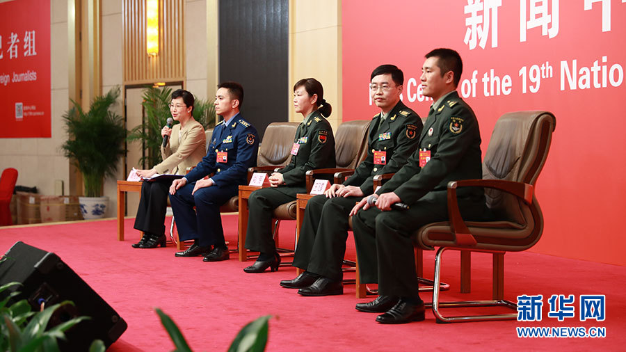 10月22日,十九大新聞中心在梅地亞中心二層新聞發(fā)布廳舉辦集體采訪活動,主題為“中國特色強軍之路邁出堅定步伐”。圖為集體采訪活動現(xiàn)場。新華網(wǎng) 郝廣鵬攝