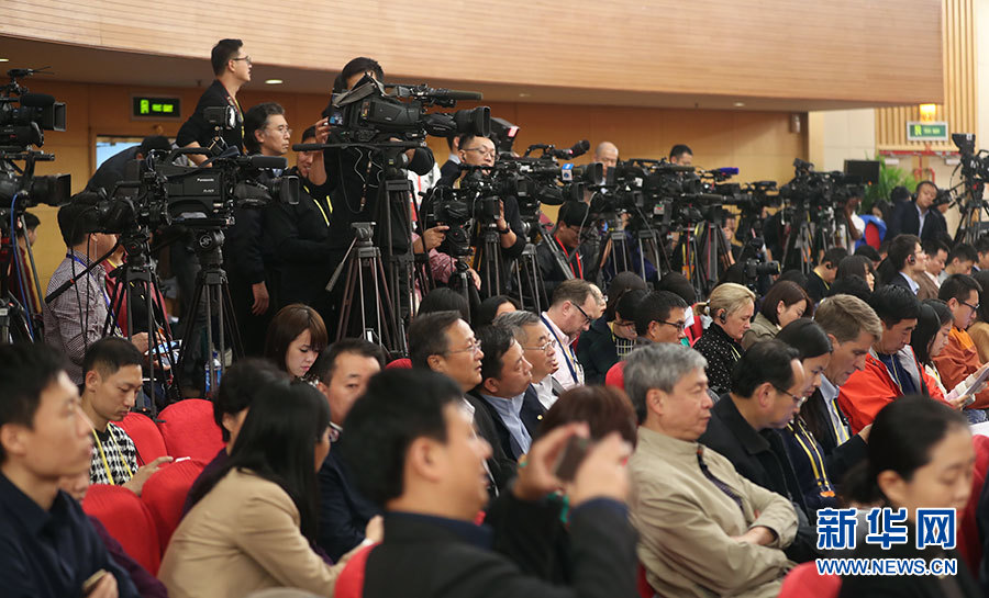 10月23日,十九大新聞中心舉辦記者招待會(huì),邀請(qǐng)中央財(cái)經(jīng)領(lǐng)導(dǎo)小組辦公室副主任楊偉民,環(huán)境保護(hù)部黨組書(shū)記、部長(zhǎng)李干杰介紹踐行綠色發(fā)展理念,建設(shè)美麗中國(guó)有關(guān)情況,并回答記者提問(wèn)。圖為現(xiàn)場(chǎng)記者。新華網(wǎng) 郝廣鵬攝