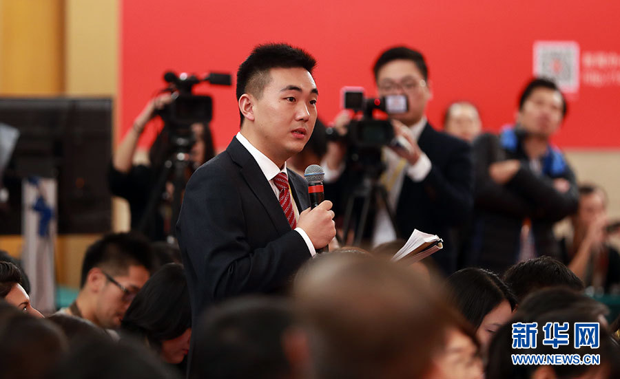 10月23日,十九大新聞中心舉辦記者招待會,邀請中央財經(jīng)領導小組辦公室副主任楊偉民,環(huán)境保護部黨組書記、部長李干杰介紹踐行綠色發(fā)展理念,建設美麗中國有關情況,并回答記者提問。圖為浙江衛(wèi)視記者提問。新華網(wǎng) 郝廣鵬攝
