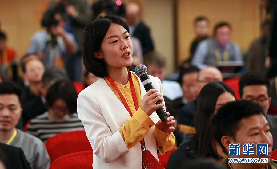 10月23日,十九大新聞中心舉辦記者招待會(huì),邀請(qǐng)中央財(cái)經(jīng)領(lǐng)導(dǎo)小組辦公室副主任楊偉民,環(huán)境保護(hù)部黨組書記、部長李干杰介紹踐行綠色發(fā)展理念,建設(shè)美麗中國有關(guān)情況,并回答記者提問。圖為中新社記者提問。新華網(wǎng) 郝廣鵬攝