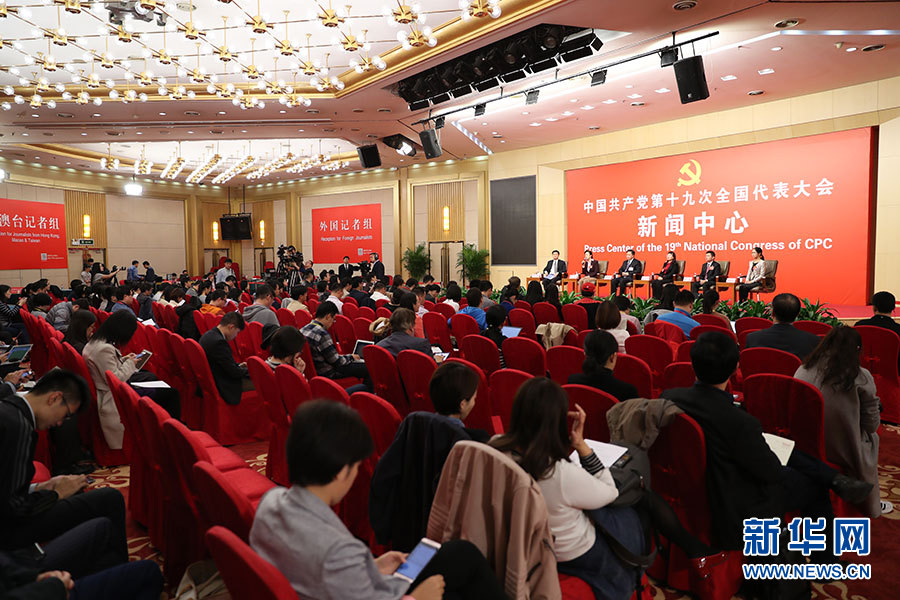 10月23日,十九大新聞中心舉辦集體采訪活動,主題為“打好生態(tài)環(huán)保攻堅戰(zhàn)”。圖為集體采訪活動現(xiàn)場。新華網(wǎng) 郝廣鵬攝