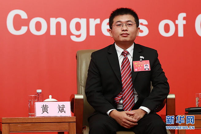 10月23日,十九大新聞中心舉辦集體采訪活動,主題為“打好生態(tài)環(huán)保攻堅戰(zhàn)”。圖為湖南省張家界市環(huán)保局環(huán)境監(jiān)測中心站分析室主任黃斌。新華網(wǎng) 郝廣鵬攝