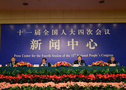 [新華網(wǎng)、中國政府網(wǎng)現(xiàn)場報道]2011年3月9日上午9時 ,十一屆全國人大四次會議新聞中心在梅地亞中心多功能廳舉行主題為“保障性住房建設(shè)和房地產(chǎn)市場調(diào)控”記者會。住房和城鄉(xiāng)建設(shè)部副部長齊驥、住房和城鄉(xiāng)建設(shè)部房地產(chǎn)市場監(jiān)管司司長沈建忠、住房和城鄉(xiāng)建設(shè)部住房保障司司長馮俊出席記者會接受媒體采訪。 [2011-03-09 08:46:17] |